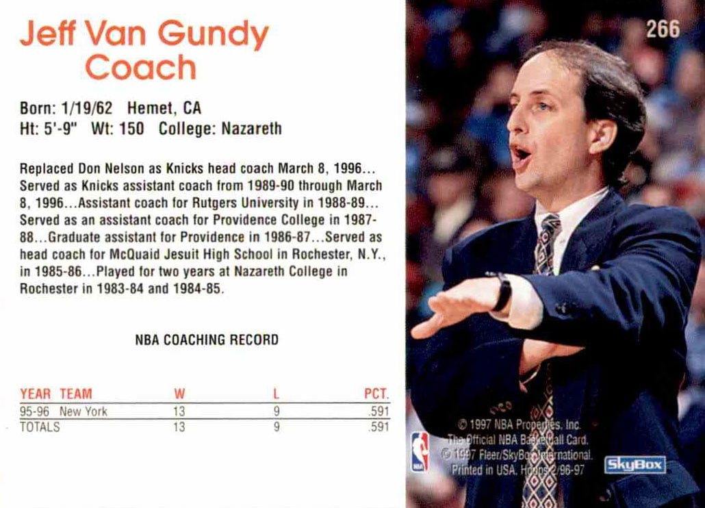 Righteous between-game alterations weren’t as paramount a necessity in 1996’s back-to-back setting, Van Gundy relayed, because the Knicks and Bulls knew each other so damn well.